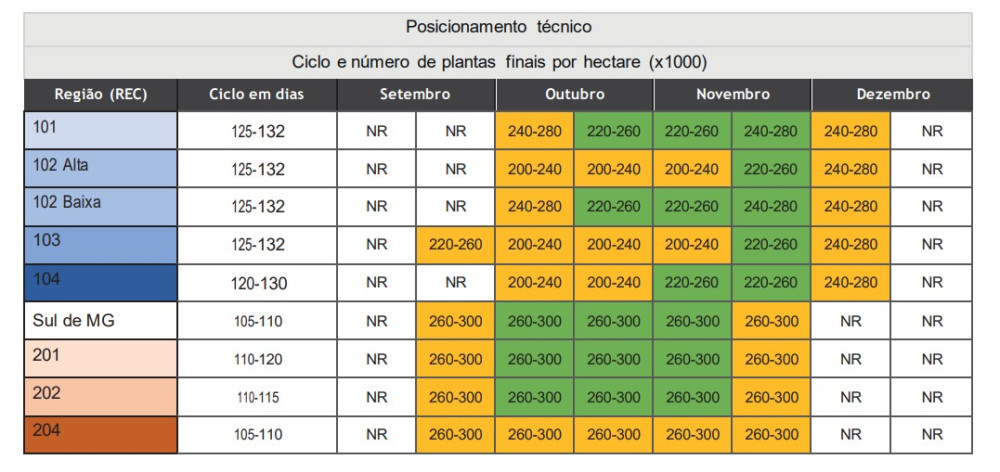 Logo após, divulgamos para conhecimento quais são os melhores materiais/variedades para a propriedade e região estudada.